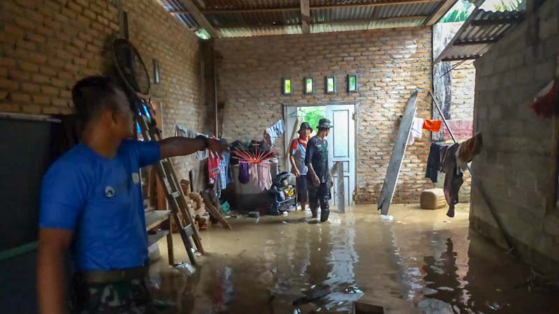 Serda Depi Satria yang memimpin anggota satgas TMMD ke-109 di lapangan saat itu membantu warga tersebut mengumpulkan perabotan yang hanyut dan mencegah air lebih besar masuk. Serda Depi mengatakan, melihat air yang begitu deras sudah memasuki rumah warga, para anggota TNI langsung membantu.