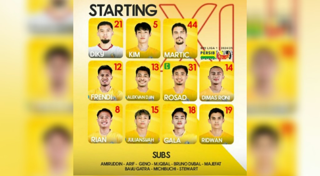 Inlah daftar susunan pemain Persib Bandung vs Semen Padang FC pada pertandingan yang berlangsung Jumat malam ini: