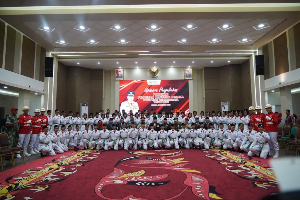 Anggota Paskibraka yang dikukuhkan ini akan menunaikan tugas menaikkan bendera merah putih pada puncak peringatan HUT RI Ke-78 di Halaman Kantor Bupati Dharmasraya.