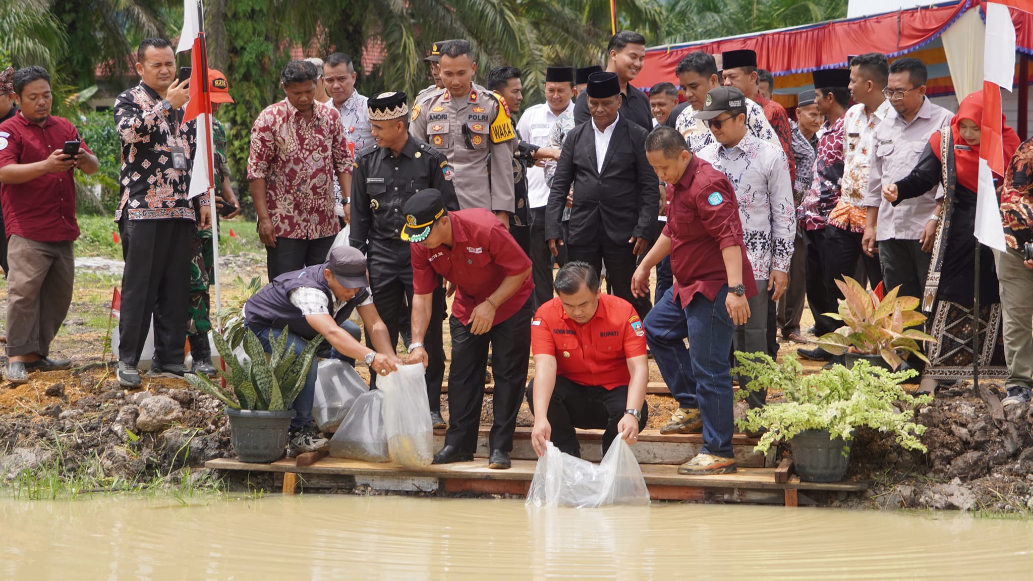 Langgam.id – Bupati Dharmasraya, Sutan Riska Tuanku Kerajaan melepas 5 ribu bibit ikan di kolam wisata ketahanan pangan Nagari Tabek, Kecamatan Timpeh pada Kamis (14/12/2023).