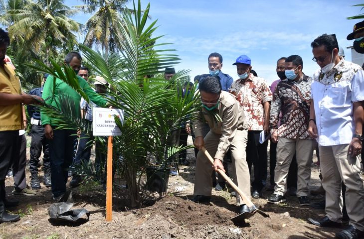 Bupati Agam, Indra Catri melakukan penanaman perdana peremajaan sawit rakyat di lahan KUD Tiku V Jorong, Kecamatan Tanjung Mutiara, Kamis (14/1/2021). (Foto: Dok.Humas Agam)