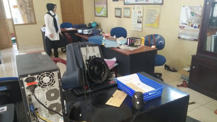 Seluruh arsip jadi berantakan. Komputer dijungkir-balikkan, laci-laci meja dibuka. Makanan yang ada ludes habis, termasuk sarapan pagi dan snack pegawai kelurahan.