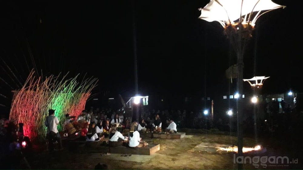 Di sekitarnya, beberapa pemusik berbagai usia duduk membentuk leter U, masing-masingnya memegang alat musik indang, talempong, canang serta aguang atau gong.