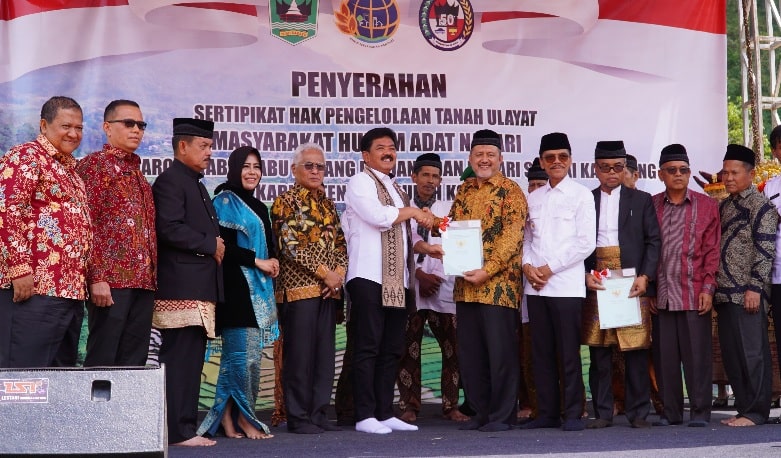 Penyerahan sertifikat tanah berupa hak pengelolaan (HPL) kepada Kerapatan Adat Nagari (KAN) itu, dilakukan di Kabupaten Tanah Datar dan Limapuluh Kota saat kunjungan kerja Rabu (11/10/2023).