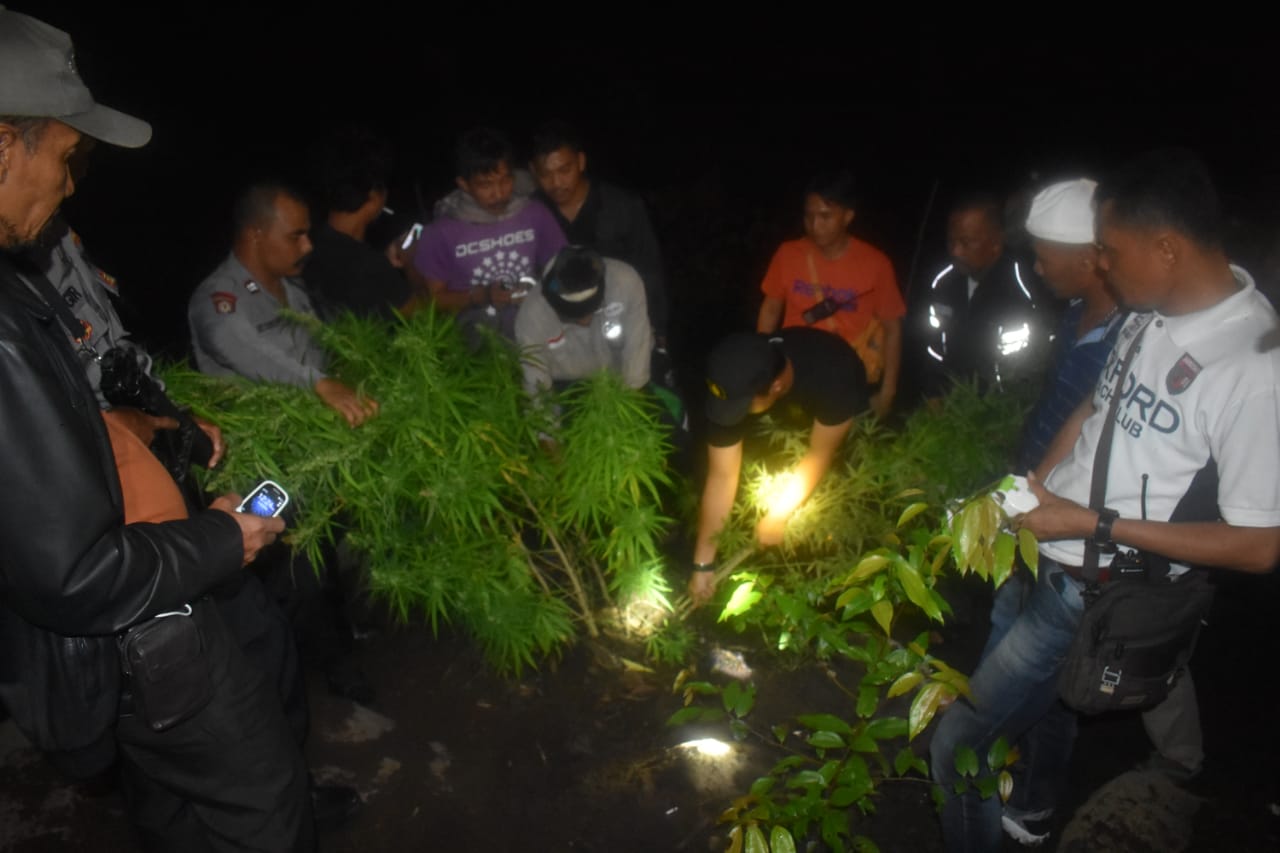 Keberadaan kebun ganja yang hampir panen dan telah berusia enam bulan itu terungkap pada Senin (22/7/2019) dinihari. Sedikitnya, 24 batang tanaman ganja diamankan polisi bersama pemilik ladang.