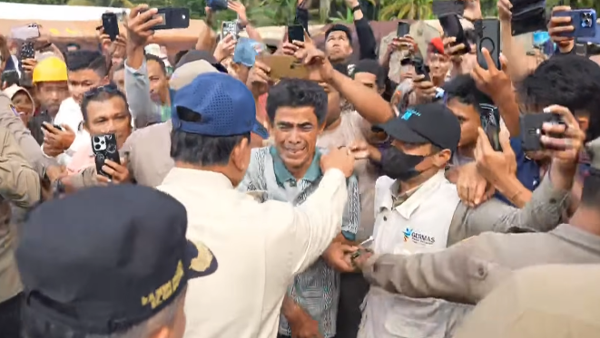 LANGGAM.ID– Warga Silareh Aia Timur Abdul Gani tak kuasa melepas tangisnya saat bertemu dengan Presiden Prabowo Subianto yang mengunjungi posko pengungsian. Ia salah satu warga terdampak bencana banjir bandang atau galodo. Rumahnya lenyap disapu banjir dan istrinya juga hilang akibat bencana tersebut.