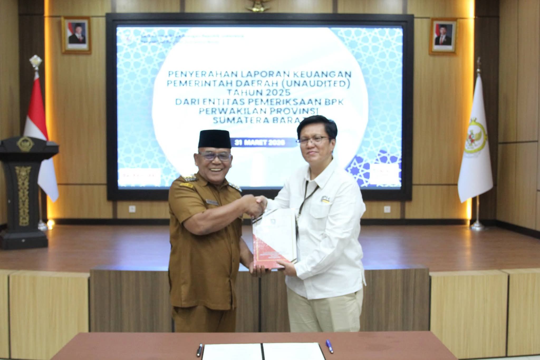 Langgam.id — Pemerintah Kabupaten Pasaman Barat menyerahkan Laporan Keuangan Pemerintah Daerah (LKPD) unaudited Tahun Anggaran 2025 kepada Badan Pemeriksa Keuangan (BPK) RI Perwakilan Sumatera Barat secara tepat waktu, Selasa (31/3/2026), di Kota Padang.