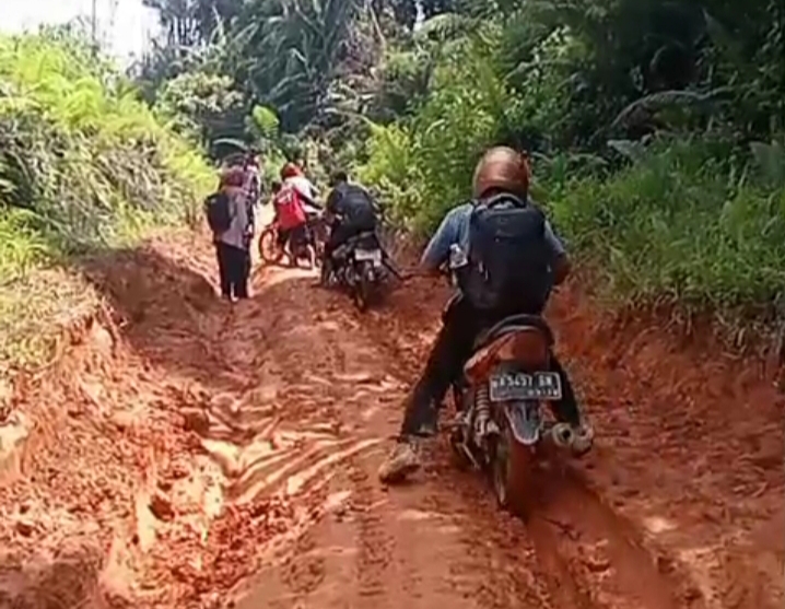 “Jalan yang dulunya beraspal sekarang berubah jadi ‘aspal merah’. Kalau hujan, kendaraan sering terjebak. Tapi kami tetap berangkat karena anak-anak sudah menunggu,” ujar Doni.