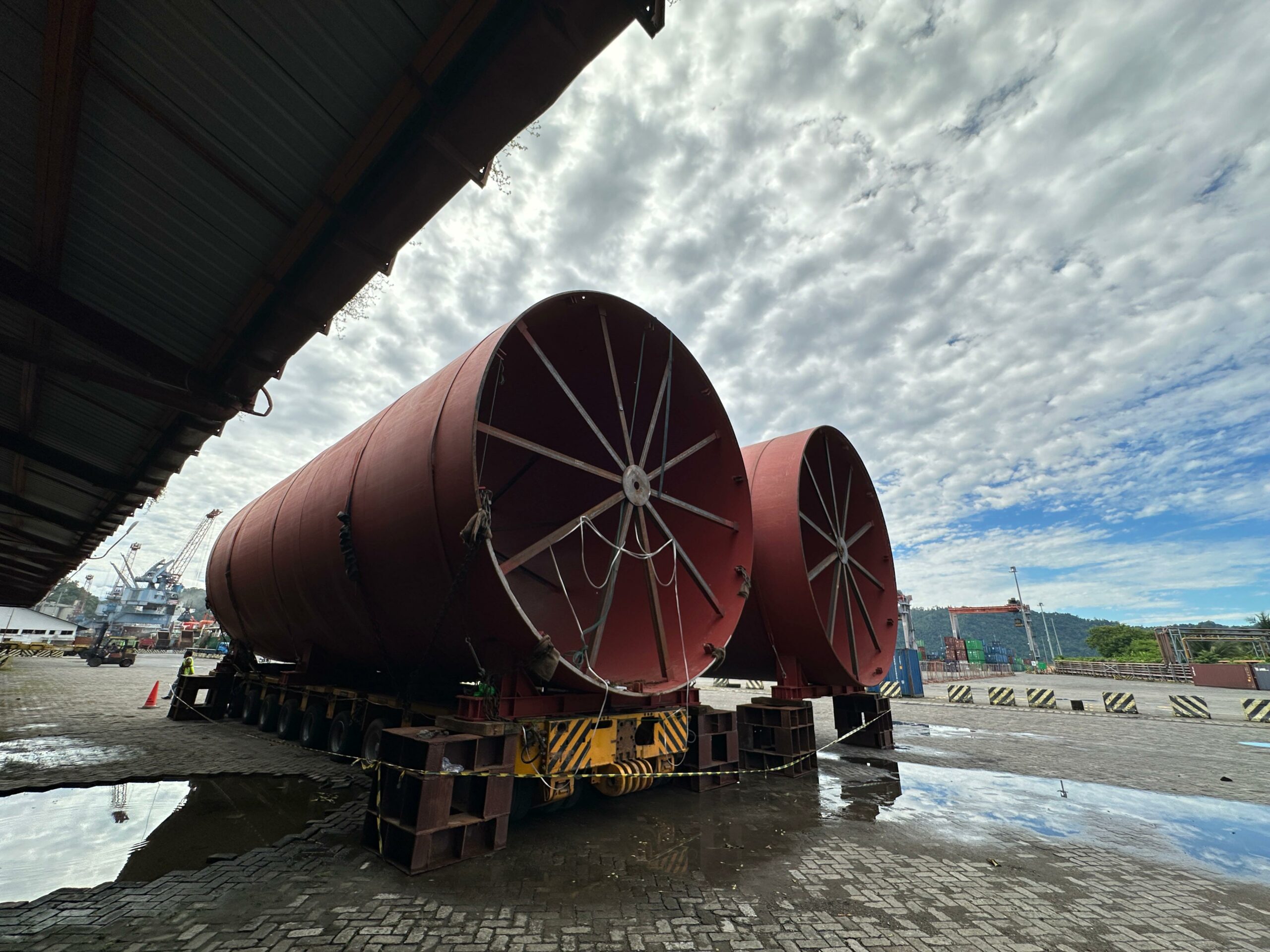 Febi menjelaskan, segmen pertama telah dikirim sebelum Lebaran dengan bobot 62 ton, diameter 5,5 meter, panjang 14,6 meter, dan ketebalan pelat 30 mm. Sementara segmen kedua, yang lebih tebal (35 mm) dan panjang 13,9 meter, akan dikirim akhir pekan ini. Total bobot keduanya mencapai 138,5 ton dan akan diangkut menggunakan armada khusus Multi Axle Truck (MAT) menuju Pelabuhan Teluk Bayur, sebelum diberangkatkan ke Pangkep, Sulawesi Selatan.