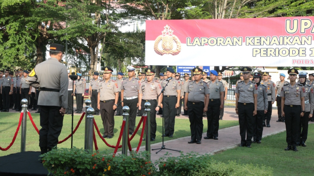 Upacara kenaikan pangkat di Polda Sumbar, dihadiri oleh Wakapolda Brigjen Pol Gupuh Setiyono, Pejabat Utama Polda Sumbar. Ketua Bhayangkari Daerah Sumbar ny. Iis Suharyono beserta pengurus Bhayangkari, dan keluarga personel yang naik pangkat. (*/fs)