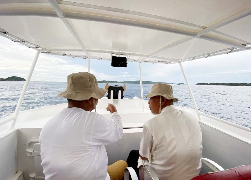 Mahyeldi (kanan) bersama Yudas Sabaggalet (kiri) saat keliling melihat keindahan Kabupaten Kepulauan Mentawai. (Foto: FB Mahyeldi Ansharullah)