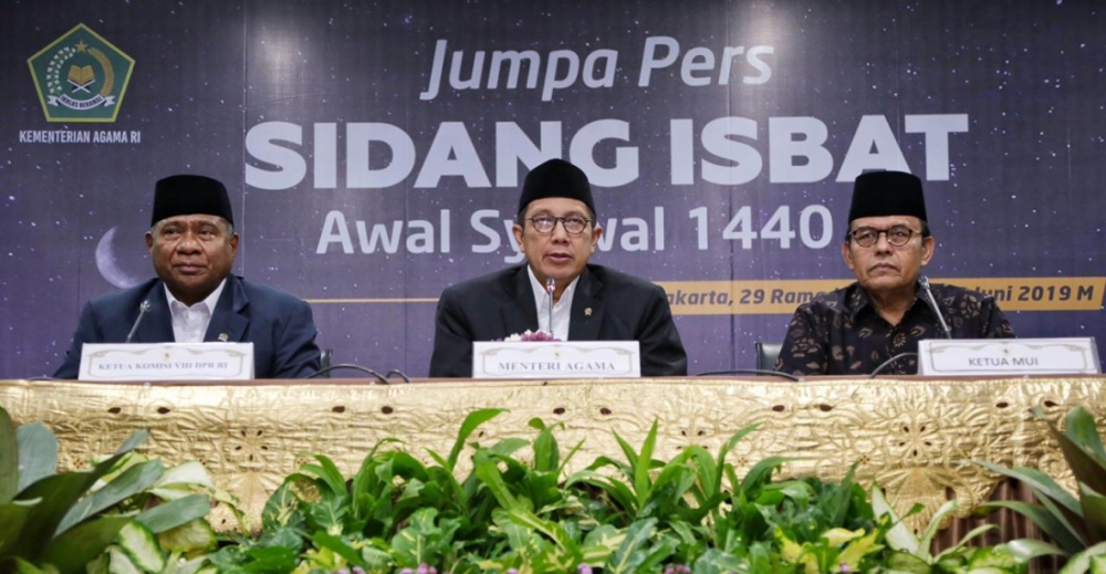 Langgam.id – Pemerintah menetapkan 1 Syawal 1440 Hijriah jatuh bertepatan dengan Rabu, 5 Juni 2019. Menteri Agama Lukman Hakim Saifuddin mengatakan, hal itu diputuskan sidang isbat, di Auditorium HM Rasjidi, Kantor Kementerian Agama, Jakarta, Senin (3/5/2019).