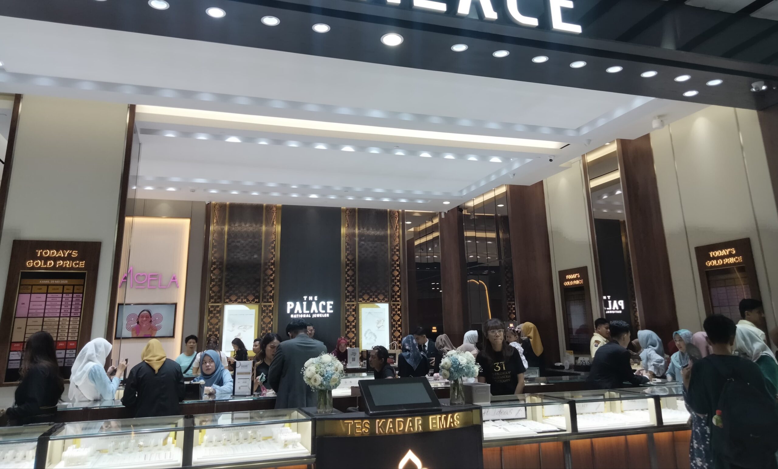 Area Manager The Palace National Jaweler, Riko Kurniawan mengatakan, konsep yang diusung toko mereka adalah “3T” yakni terlengkap, terjangkau dan terjamin. Promo diskon emas juga mencapai 50 persen.