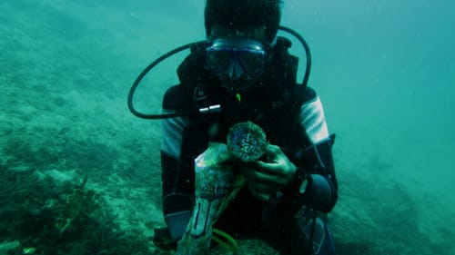 Dia mengatakan sampah mengendap ke bawah karena plastik tersebut dimasuki butiran pasir sehingga sulit mengapung. Sampah tersebut juga menutupi terumbu karang dan merusaknya. Sampah tersebut bisa ditemukan hingga kedalaman 10 meter.