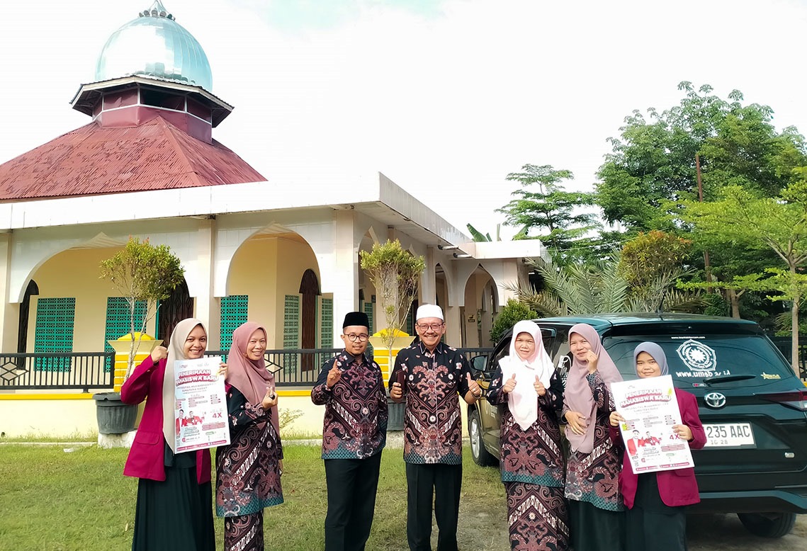 Usai kegiatan, tim pengabdian membagikan kalender UM Sumatera Barat kepada masyarakat dan jemaah sekitar.