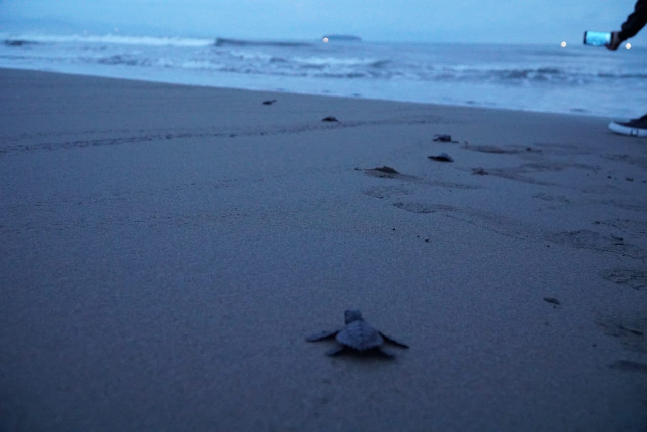 Langgam.id Sebanyak 64 ekor anak penyu kembali dilepaskan ke laut oleh Konservasi Penyu Jambak Sea Turtle Camp Pokmaswas Samudera Pasir Jambak, Kota Padang, Jumat (31/5/2019).