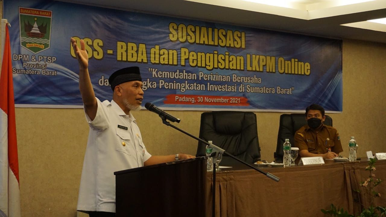 “Tidak zamannya lagi aparatur yang melakukan pungli. Tidak boleh terlambat, tidak boleh diperlambat, tidak boleh menghambat,” katanya saat memberi sambutan pada acara Sosialisasi Online Single Submission Risked Based Approach (OSS-RBA) dan Pengisian Laporan Kegiatan Penanaman Modal (LKPM) Online, di Hotel Axana Padang, Selasa (30/11/2021).