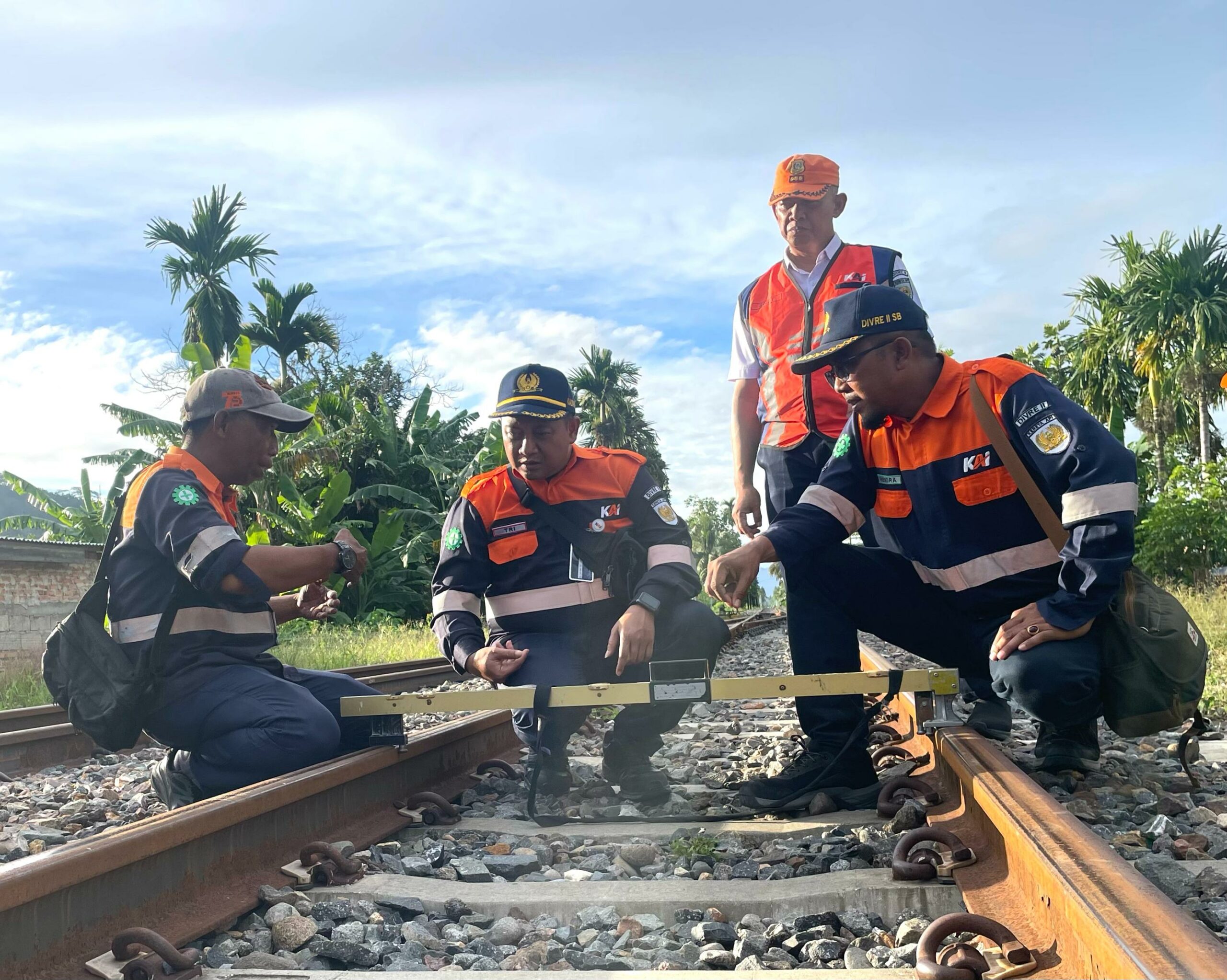 Kegiatan cek lintasan dengan berjalan kaki tersebut diikuti oleh jajaran Management Divre II Sumbar dan diawali dengan safety briefing yang dipimpin oleh Vice President PT KAI Divre II Sumbar, Muh Tri Setyawan.