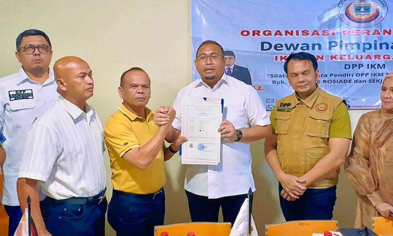 “Malam ini Kamis, tanggal 3 Juli 2025 bertempat di kantor pak Yonnoviar, Sekretariat DPD IKM Tangsel pukul 22.59 WIB. Saya mantan Ketum pertama DPP IKM dan sekaligus juga bersama pendiri, dengan ini menyerahkan sertifikat logo DPP IKM kepada ketum terpilih hasil Munas bapak Andre Rosiade. Semoga DPP IKM berjaya di bawah kepempinan beliau beserta pengurus terpilih dan seluruh jajarannya,” harap Syahruddin.