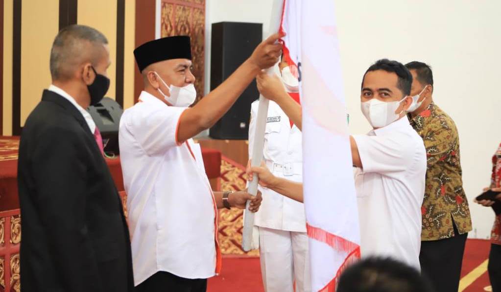 Pelantikan sekaligus penyerahan bendera pataka dilakukan langsung Ketua KONI Sumbar Agus S. Suardi. Acara juga dihadiri Wakil Bupati Rudi Hariyansyah dan Kabid Olahraga Dinas Pariwisata Pemuda dan Olahraga Gestrojoni.