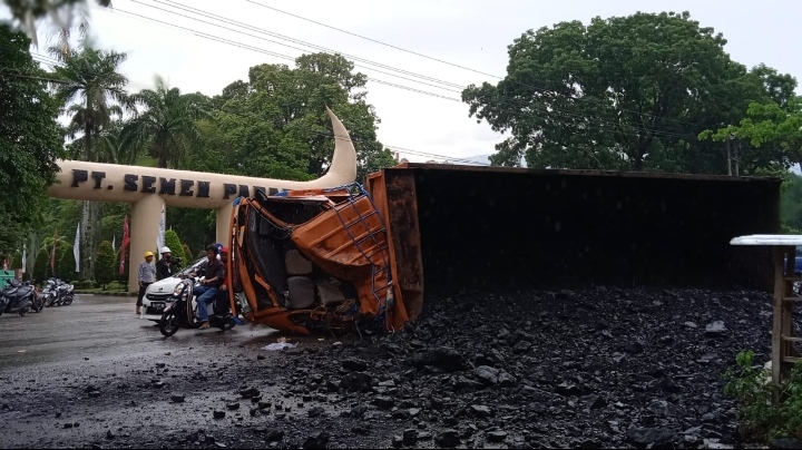 “Truk kemudian kehilangan keseimbangan dan rebah ke arah kiri serta menumpahkan seluruh muatannya yaitu batubara,” ujarnya.