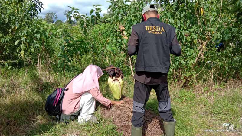 Langgam.id – Bunga bangkai, tumbuhan langka dengan nama latin Amorphophallus titanum gagal mekar di daerah Manggih, Nagari Lubuk Basung Kecamatan Lubuk Basung, Kabupaten Agam. Pengendali Ekosistem Hutan BKSDA Resor Agam, Ade Putra mengatakan tumbuhan dilindungi tersebut diduga gagal mekar, karena ada pengunjung yang merusaknya.