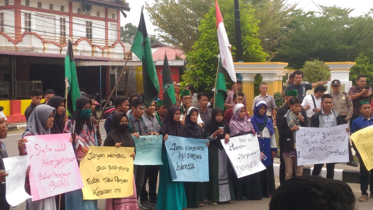 “Kami menilai bupati Hendrajoni gagal memimpin daerah. Tidak ada progres kemajuan daerah. Pembangunan RSUD saja dihentikan,” kata salah seorang peserta aksi, Hardian Syah Kurniawan.