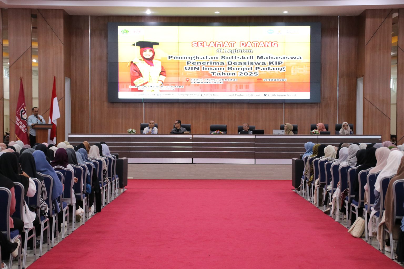 InfoLanggam – UIN Imam Bonjol Padang menggelar kegiatan peningkatan softskill bagi mahasiswa penerima beasiswa KIP pada tahun 2025 di Gedung J pada Kamis (20/2/2025).