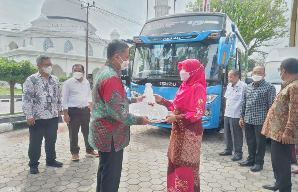 Mobil yang diterima terdiri dari bus jenis Izuzu NQR 71 medium dan mobil Toyota Hiace. Serah terima dilakukan di Aula Rektorat UIN IB Padang.