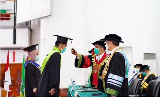 “Prosesi wisuda online di masa pandemi ini memberi pesan kuat kepada kita semua, bahwa proses pendidikan itu mengharuskan sebuah kolaborasi, kolaborasi paling nyata adalah antara universitas dengan orang tua atau wali, bahkan dalam prosesi pemindahan jambul pun dilakukan secara bersama untuk wisudawan,” ujar Rektor.