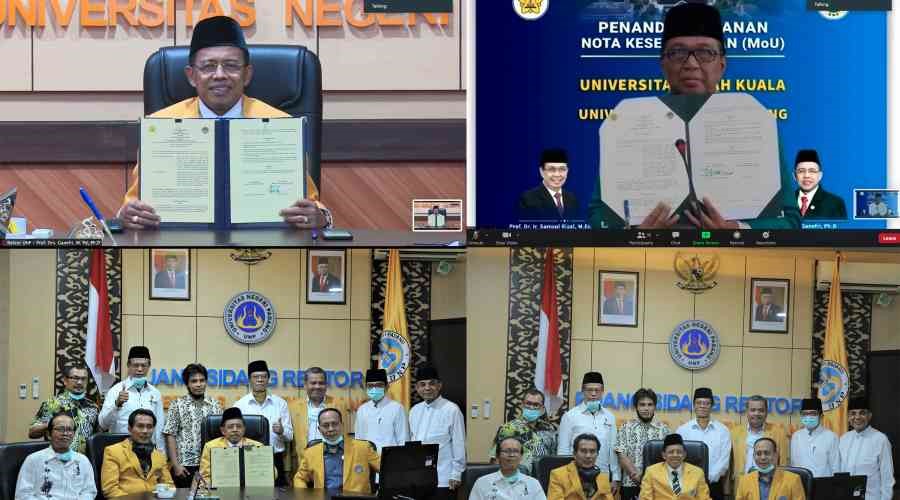 Langgam.id – Rektor Universitas Negeri Padang menandatangani Kerja Sama dengan Rektor Universitas Syiah Kuala, Aceh tentang pelaksanaan Tridarma. Penandatanganan kerjasama ini dilakukan secara virtual melalui aplikasi zoom meeting.