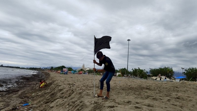 Langgam.id – Dinas Pariwisata Kota memasang sejumlah bendera berwarna merah dan hitam di Pantai Padang. Pemasangan bendera tersebut adalah peringatan untuk pengunjung.