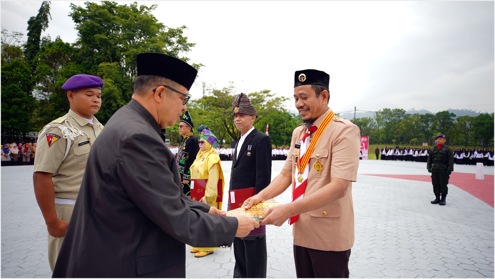 Penganugerahan itu diserahkan Rektor Unand Prof. Dr. Yuliandri yang dilakukan secara simbolis kepada Arpentius, ST, MM (Satyalancana Karya Satya XXX tahun) Pembina Tk1/Arsiparis Ahli Madya, Prof. Dr. Ratni Prima Lita, MM (Satyalancana Karya Satya XX tahun) Guru Besar Fakultas Ekonomi dan Bisnis, dan Ahmad Dahlan, SH (Satyalancana Karya Satya X tahun) Penata Muda 3b Bendahara Pembantu, dalam rangkaian upacara HUT RI ke 78 di Kampus Unand, Limau Manis, Kamis (17/8/2023).