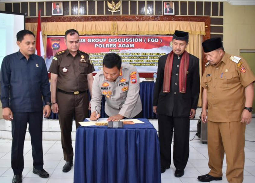 Langgam.id – Kepolisian Resort (Polres) Kabupaten Agam, Sumatra Barat (Sumbar) terus berupaya mengotimalkan penerapan Restoratif Justice dalam penegakkan hukum. Kali ini, juga sudah diatandatangani Memorandum of Understanding (MoU) bersama Lembaga Kerapatan Adat Alam Minangkabau (LKAAM) Kabupaten Agam.