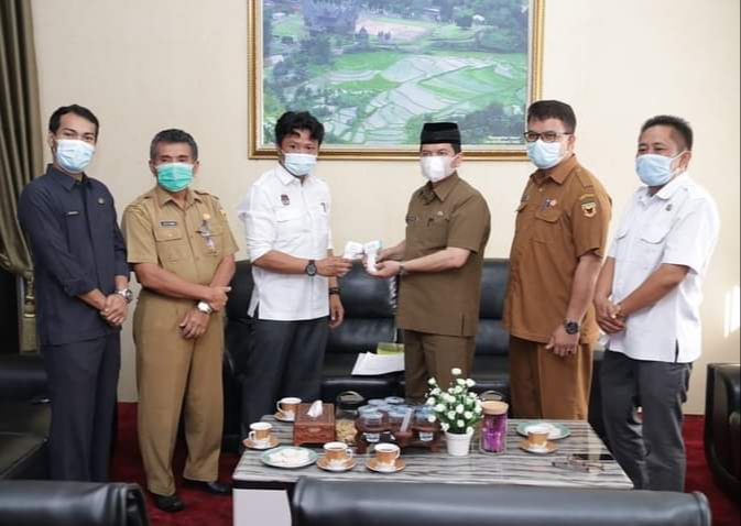 Langgam.id – KPU Tanah Datar menyerahkan 968 buah thermogun atau alat pengukur suhu tubuh kepada Pemkab Tanah Datar, Senin (22/2/2021). Thermogun tersebut diterima Plh Bupati Tanah Datar Irwandi di ruang kerjanya di Pagaruyung.