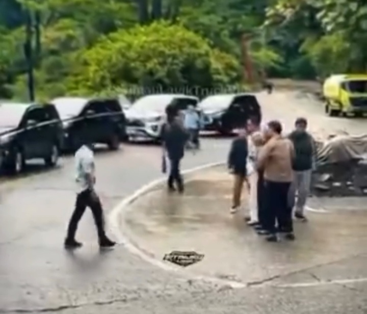 Dalam rekaman video, terlihat sejumlah kendaraan yang berada dalam pengawalan polisi berhenti di badan jalan persis di tikungan yang dikenal dengan sebutan tanjakan viral Sitinjau Lauik.