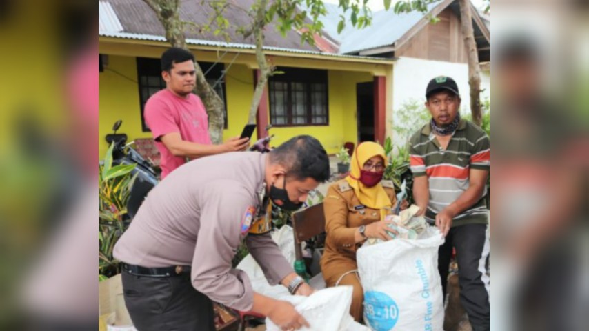 Lurah Tigo Koto Diate, Musleniyetti mengatakan, pihaknya dibantu dengan Bhabinkamtibmas Bripka Eko Sandra dan warga setempat berhasil mengumpulkan 9 karung uang kertas dan logam.