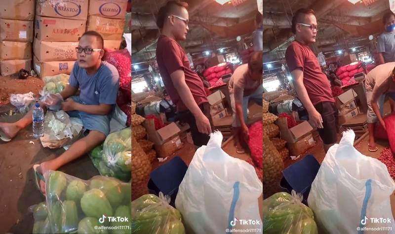 Video penjual bawang mirip Sule itu pertama kali viral setelah dibagikan akun TikTok @alfensodri11171. Dalam unggahan itu terlihat seorang pria mengenakan kaos abu-abu dan celana pendek.