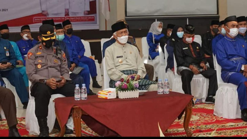 Langgam.id – Mengenakan pakaian Taluak Balango, Wakil Bupati Dharmasraya, Dasril Panin Datuk Labuan, mengikuti upacara Peringatan Hari Lahir Pancasila tahun 2021, secara virtual dari Auditorium Kantor Bupati Dharmasraya, Selasa (1/6/21). Upacara yang mengangkat tema “Pancasila dalam Tindakan Bersatu untuk Indonesia Tangguh” itu digelar di halaman Gedung Pancasila, Kementerian Luar Negeri, Jakarta Pusat, dan disiarkan secara live melalui akun YouTube Sekretariat Presiden.