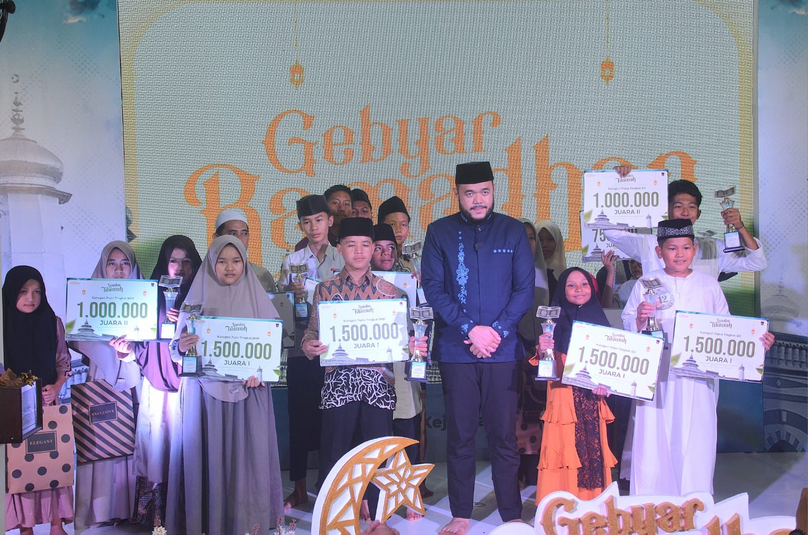 Penyerahan hadiah juara Gebyar Ramadan diserahkan bersamaan dengan penyerahan penyelenggara terbaik Pesantren Ramadan 1446 H. Beragam hadiah yang diserahkan bagi para juara antara lain uang tunai, bingkisan, trophy dan sertifikat, laptop, layar proyektor, dan sepeda motor, serta 1.412 paket Sembako dari Bank Nagari.