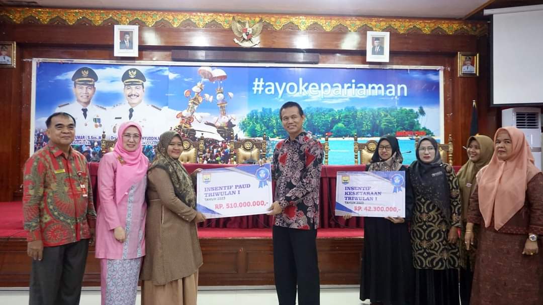 Langgaminfo – Wali Kota Pariaman Genius Umar menyerahkan insentif triwulan pertama untuk 383 tenaga pendidik atau guru Pendidikan Anak Usia Dini (PAUD) se-Kota Pariaman.