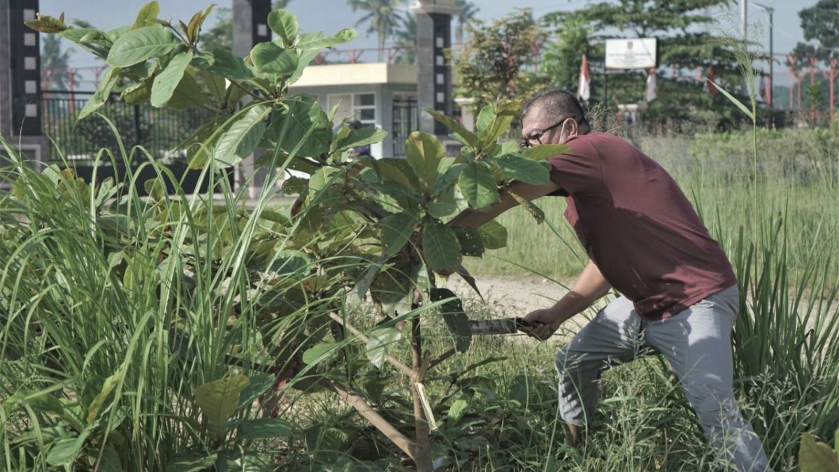 Pada kesempatan itu, Riza menyempatkan untuk melakukan gotong royong dan penanaman pohon di sekitar lokasi pencanangan.
