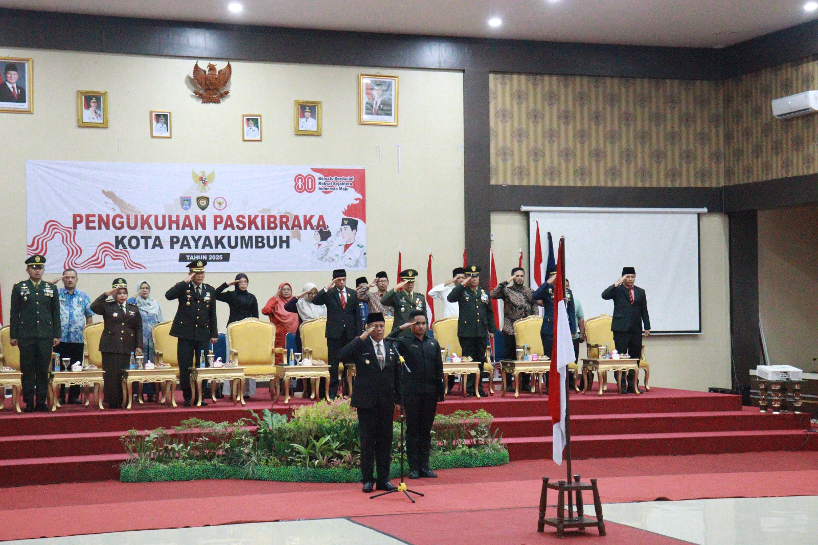 Langgam.id – Wakil Wali Kota Payakumbuh, Elzadaswarman secara resmi mengukuhkan Pasukan Pengibar Bendera Pusaka (Paskibraka) Kota Payakumbuh Tahun 2025 di Aula Ngalau Indah Balai Kota Payakumbuh, Jumat (15/08/2025).