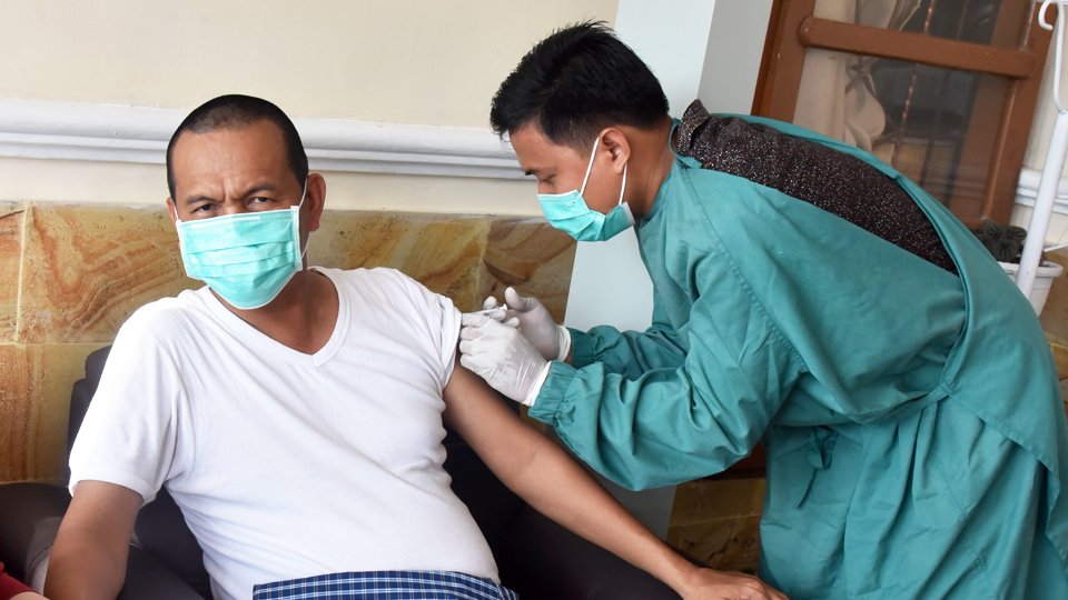 “Vaksin itu untuk menjaga tubuh kita kuat dalam menghadapi Covid-19, di mana cairan yang disuntikan adalah virus yang sudah mati, sehingga nantinya akan membuat pertahanan tubuh melawan ganasnya virus corona ini,” tukasnya.