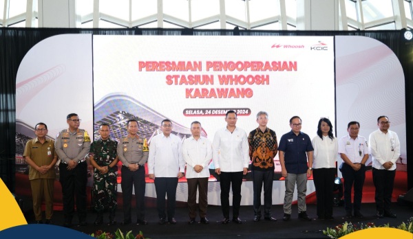 Pengoperasian Stasiun Whoosh Karawang diresmikan secara langsung oleh Menteri Koordinator (Menko) Bidang Infrastruktur dan Pembangunan Kewilayahan, Agus Harimurti Yudhoyono (AHY).