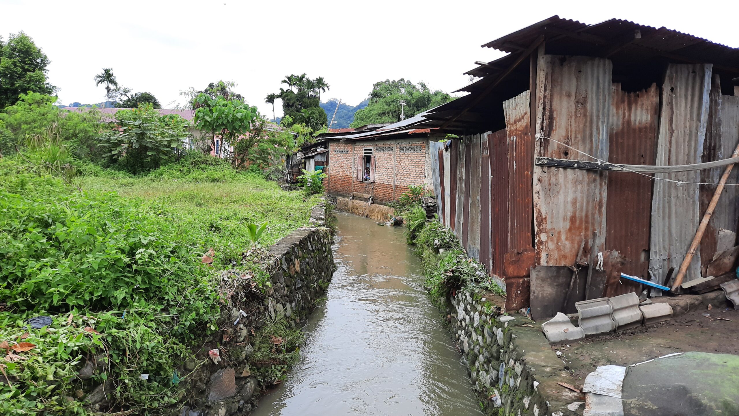 “Di belakang (rumah) saya kan aliran parit. Tapi dulu parit itu agak lebar. Jadi yang punya tanah di seberang itu paritnya dia dam, jadi paritnya itu sekarang kecil,” ungkap Rina.