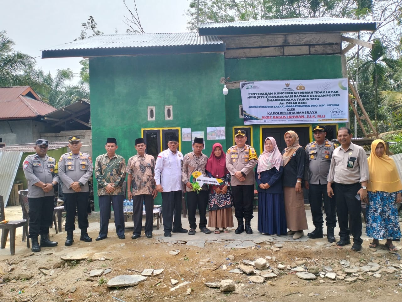 Ketua Baznas Dharmasraya, Z Lubis mengatakan bahwa bedah rumah ini merupakan kerjasama Baznas bersama Polres Dharmasraya.