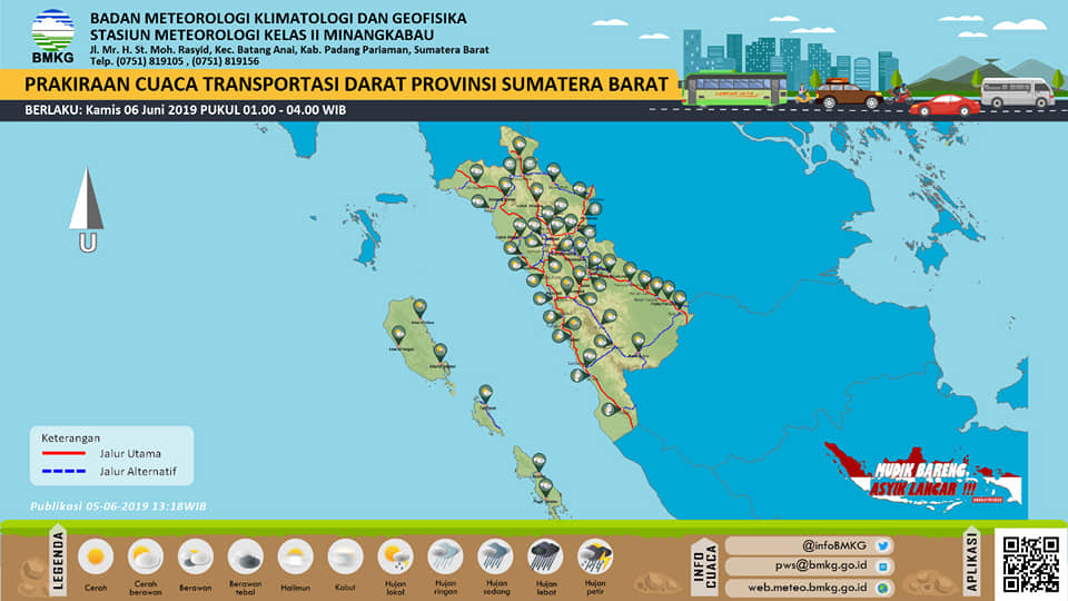 Dalam prakiraan tersebut, sejumlah wilayah di Sumbar berpotensi hujan sejak ringan, sedang hingga lebat sejak Kamis ini sampai dengan Sabtu (8/8/2019). Hal ini bisa jadi pedoman bagi masyarakat dan pemudik yang akan memanfaatkan waktu mengisi libur Lebaran.