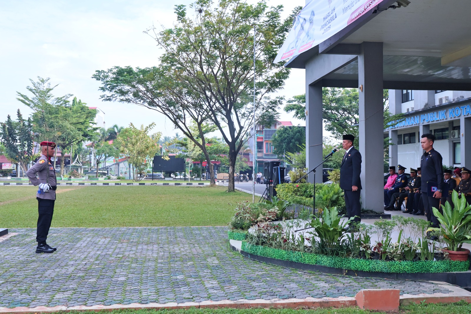 Wakil Wali Kota Payakumbuh Elzadaswarman yang bertindak sebagai inspektur upacara menyampaikan sambutan penting terkait makna strategis Hari Lahir Pancasila.