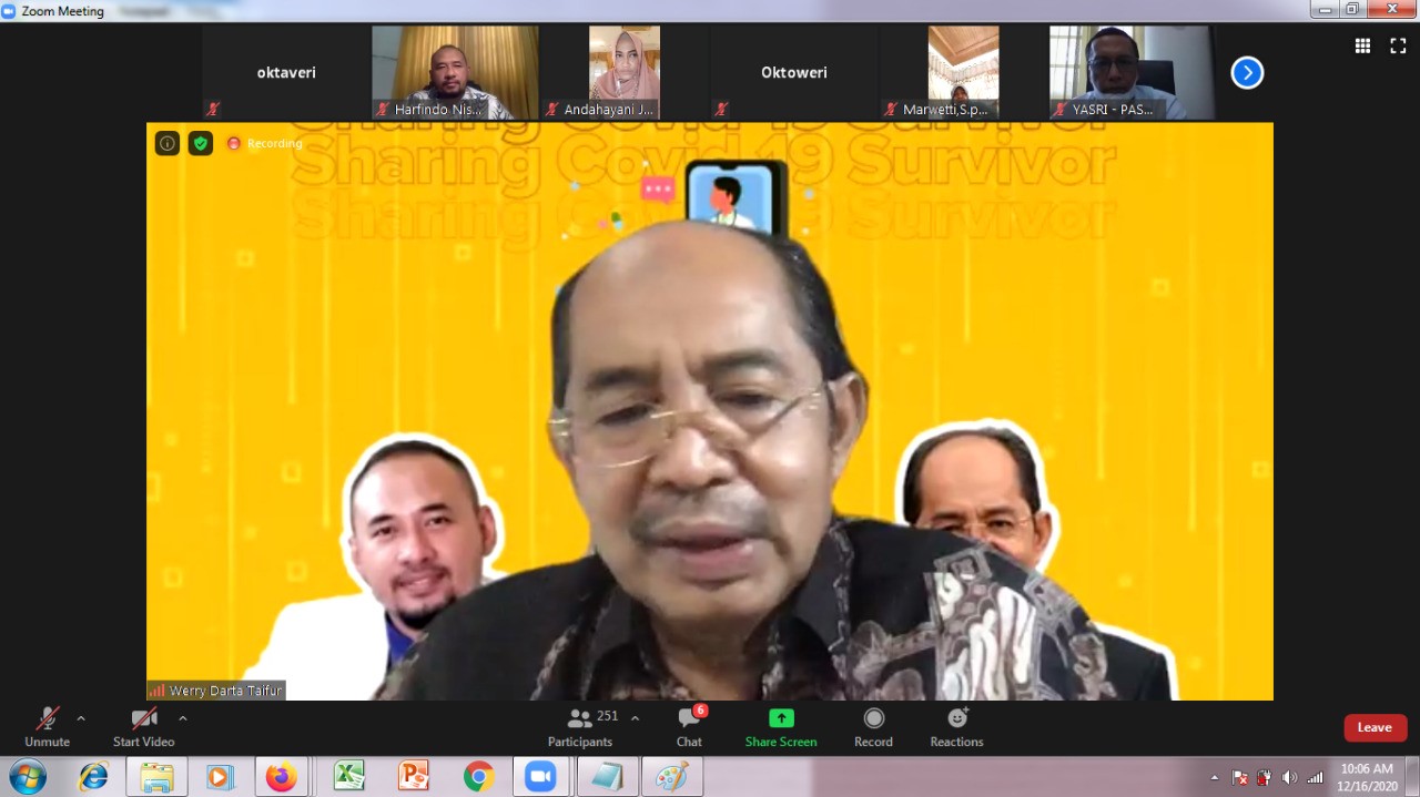 Prof. Dr. H. Werry Darta Taifur, SE, MA, dan drg. Harfindo Nismal, Sp. BM menceritakan pengalamannya terpapar virus COVID-19, kepada ratusan karyawan Semen Padang Group yang hadir pada webinar yang dibuka oleh Kepala Departemen Komunikasi & Hukum Perusahaan PT Semen Padang Oktoweri.